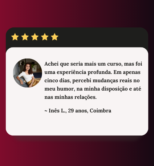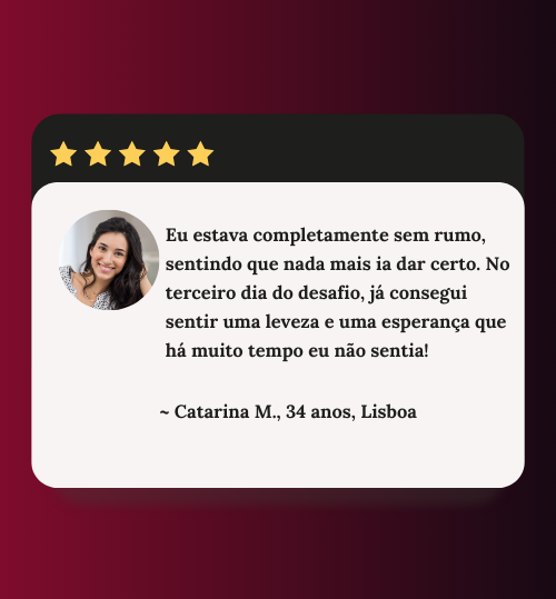 Vamos restaurar sua confiança e clareza interior com exercícios práticos desde a primeira aula, para que você saia do Desafio sentindo-se renovado(a), mesmo que seja totalmente iniciante neste universo de transformação!