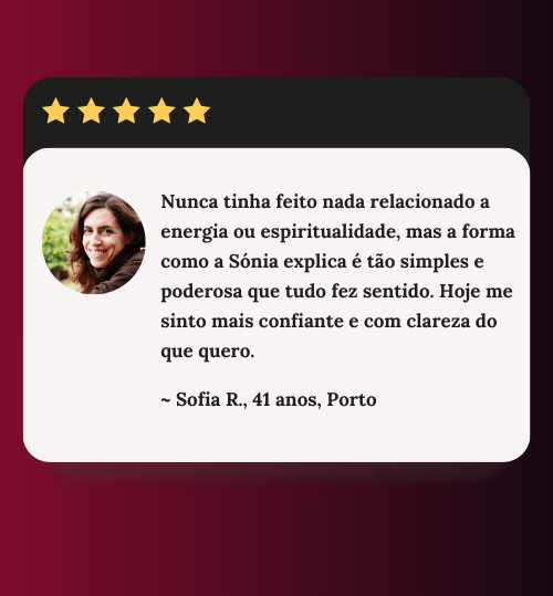 Ao longo de sua trajetória, Sónia já ajudou inúmeras pessoas a libertarem-se de bloqueios emocionais e energéticos que impediam o fluxo natural de prosperidade, bem-estar e realização.